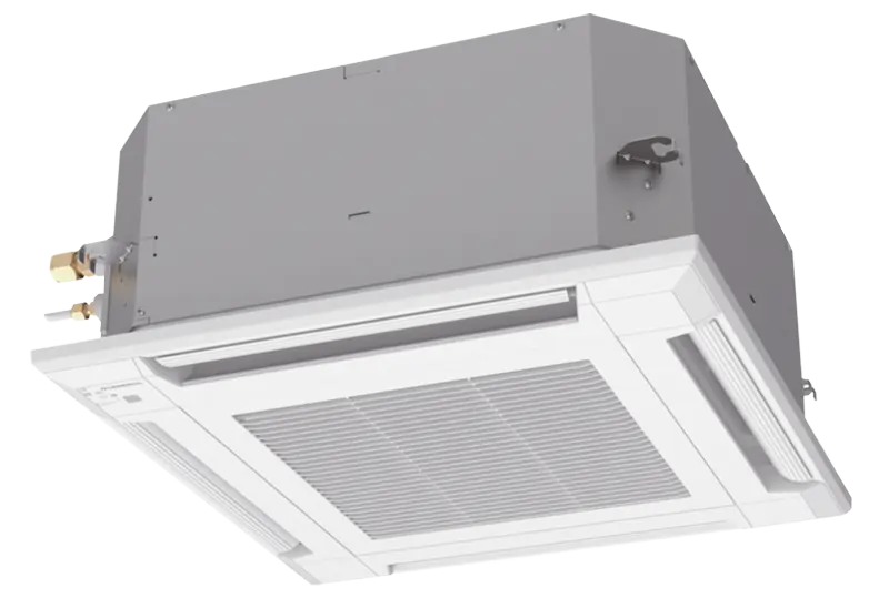 Klimatyzator kasetonowy split dedykowany do montażu w stropach podwieszanych, przeznaczone są dla klientów poszukujących rozwiązań dla przestrzeni biurowych lub usługowych, gdzie wymagany jest duży strumień powietrza rozprowadzany w wielu różnych kierunkach. Specjalna konstrukcja klimatyzatora oraz maskownicy znacząco ułatwia dopasowanie urządzenia do paneli sufitu podwieszanego o standardowych wymiarach 620mm x 620mm. Otwierana klapa urządzenia pozwala na dokonanie podstawowych czynności serwisowych bez konieczności demontażu paneli sufitowych.